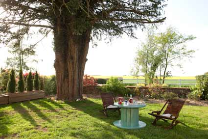 temps, dans un joli jardin arboré,